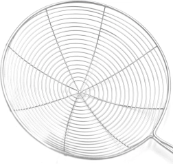 Écumoire universelle en inox de 35 cm, indispensable pour la préparation de soupes, sauces et aliments frits. Sa construction robuste en acier inoxydable garantit longévité, entretien facile et hygiène d’utilisation. La tête ouverte en fil métallique évacue rapidement liquides et graisses, de sorte que les aliments restent croustillants sans détremper.
