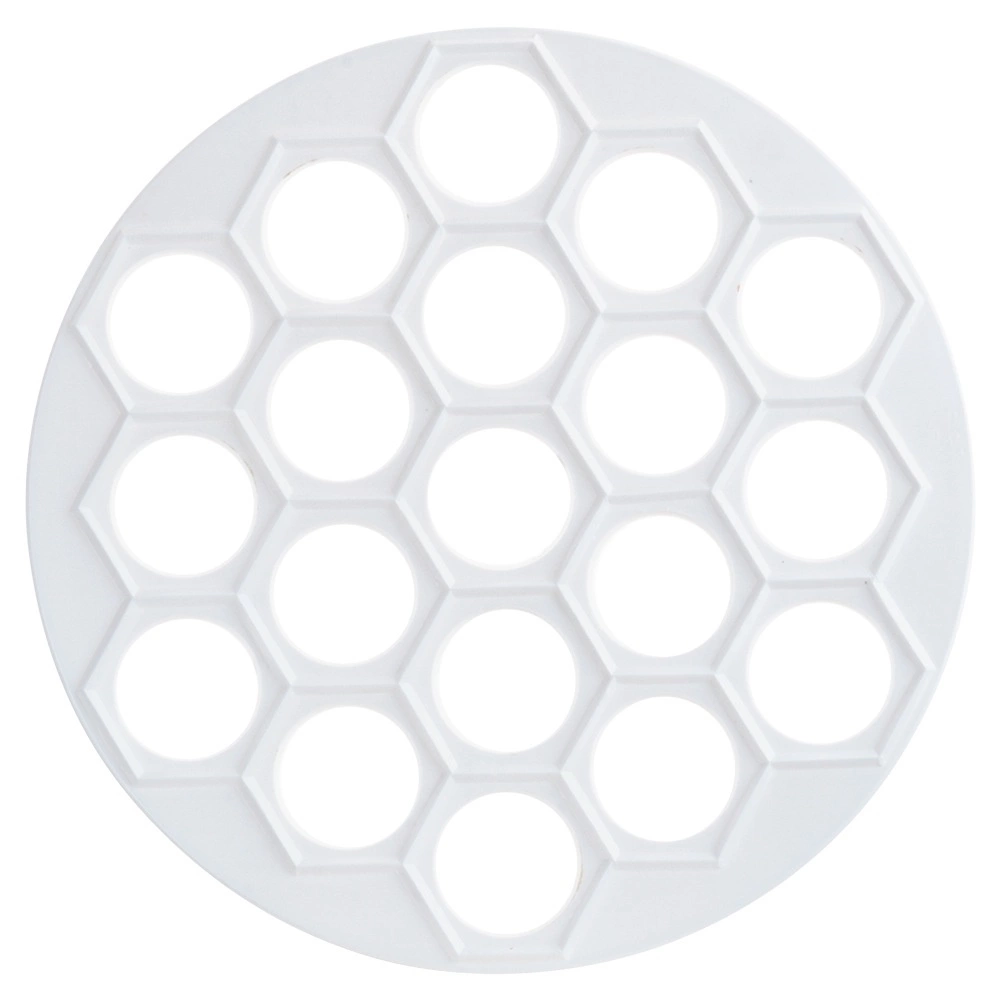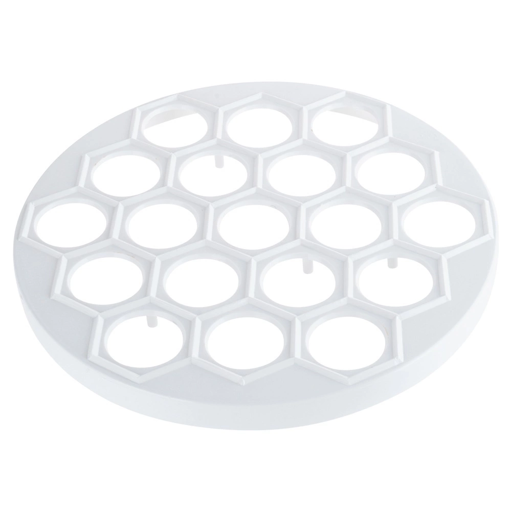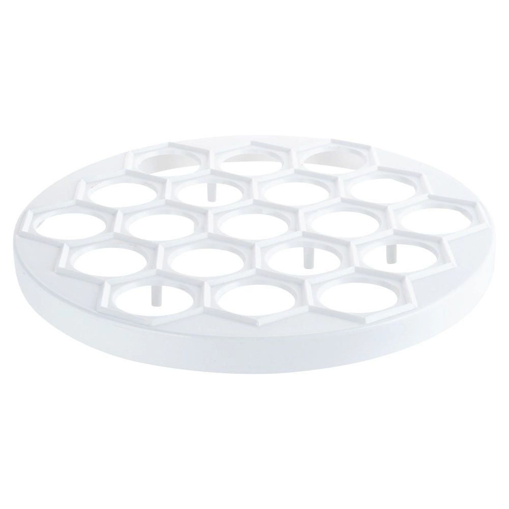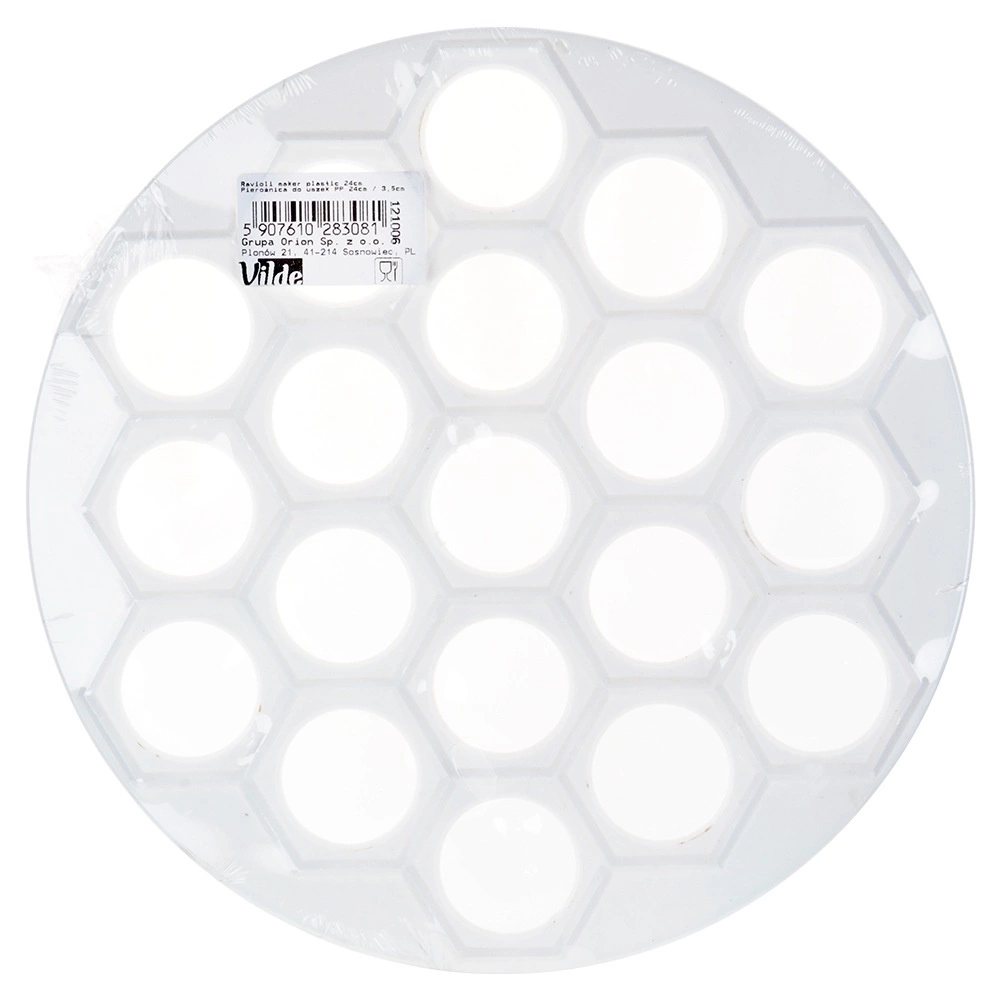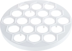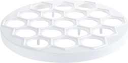 Moule pratique pour pelmeni, raviolis et mini pierogi de 24 cm de diamètre pour préparer rapidement jusqu’à 37 pièces à la fois. En plastique alimentaire léger et résistant de couleur blanche, idéal pour un façonnage rapide et uniforme de la garniture et de la pâte. Parfait pour toute cuisine et pour la restauration, il fait gagner du temps et garantit la forme parfaite de chaque pièce.