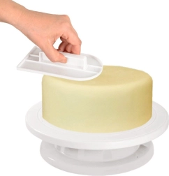 La base plate assure un lissage uniforme des crèmes et de la pâte à sucre afin d’obtenir des bords nets et une finition professionnelle.