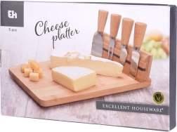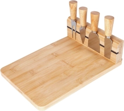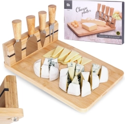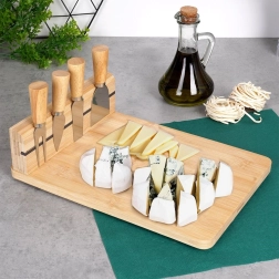 Planche de service en bambou pour fromages avec couteaux, ensemble 5 pièces