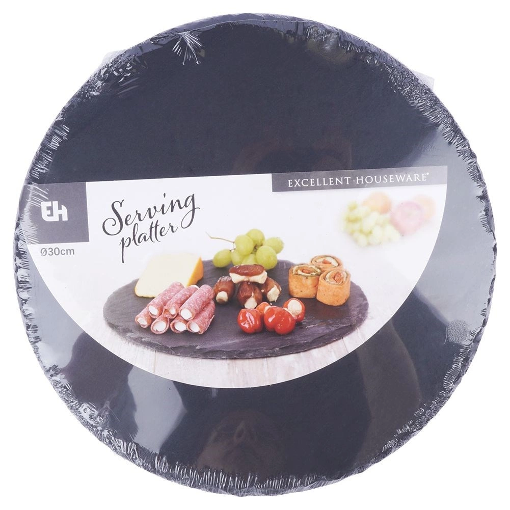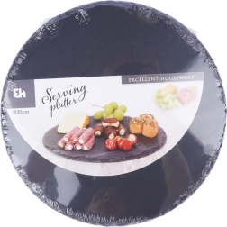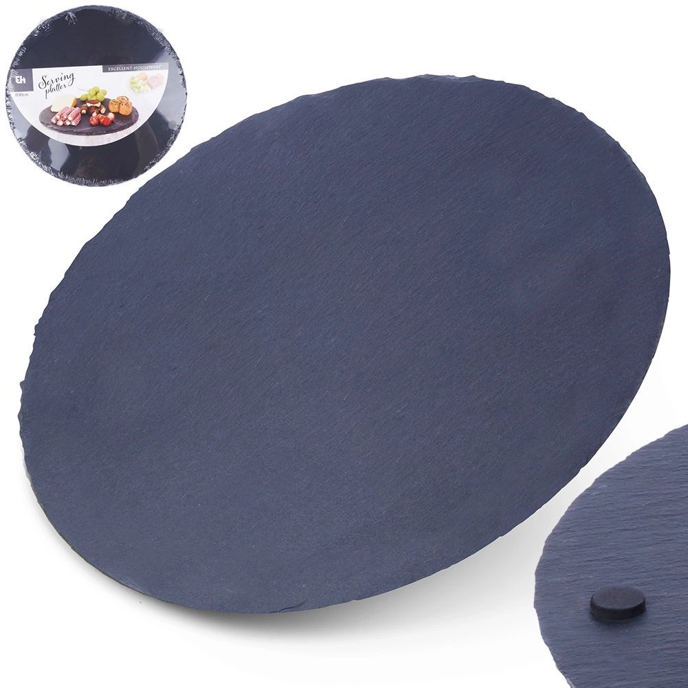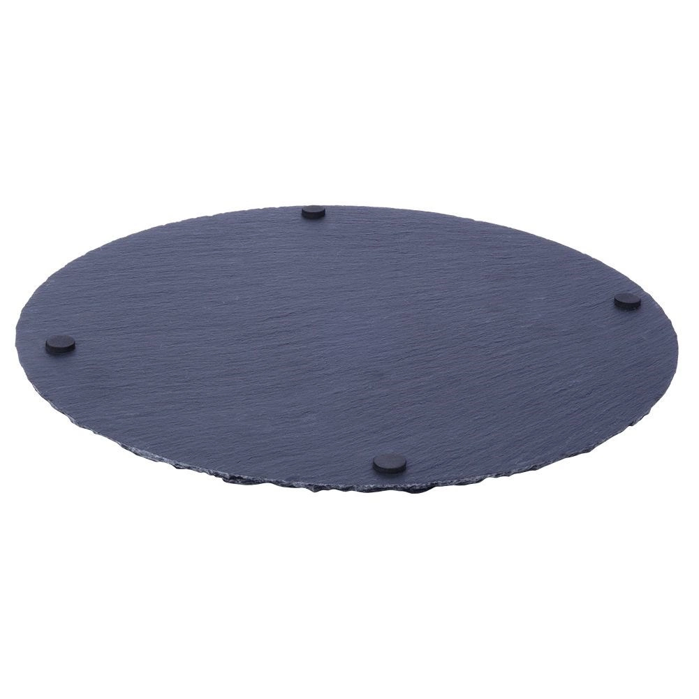 Élégant plateau rond en ardoise naturelle de 30 cm de diamètre pour un service stylé. Il offre un look rustique, une surface en pierre robuste et une utilisation polyvalente pour fromages, entrées, desserts et plats chauds. Grâce aux patins antidérapants, il est stable et sûr sur toute table.