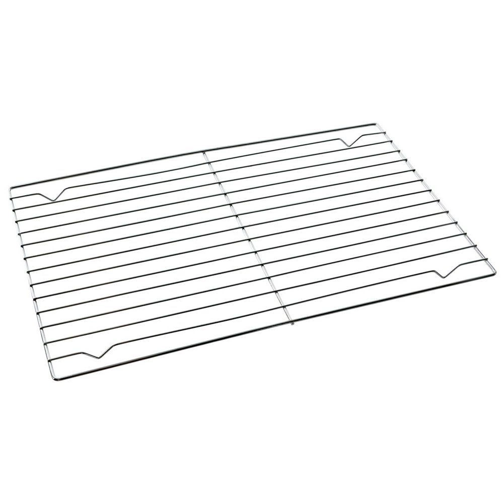 Grâce à ses pieds surélevés, elle fonctionne aussi comme sous‑plat pour récipients chauds, protégeant le plan de travail et la table. Idéale également pour le glaçage et la décoration de gâteaux, biscuits ou cupcakes : l’excédent de glaçage s’écoule facilement. La grille peut être utilisée sur des plaques ou dans des plats de différentes tailles. Pour une longue durée de vie, le lavage au lave‑vaisselle n’est pas recommandé.