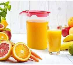 Pichet en plastique pratique d’une capacité de 1,75 l avec couvercle, bec verseur et poignée confortable pour un service facile. Couvercle hermétique protégeant les boissons des impuretés et des insectes, doseur intégré pour un service précis et matériaux résistants sans BPA garantissant une utilisation quotidienne sûre à la maison comme au jardin.