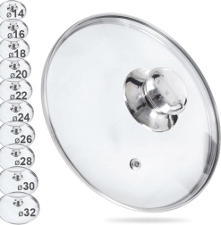 Pratique, ce couvercle en verre résistant à la chaleur est compatible avec la plupart des casseroles, poêles et sauteuses de 20 cm de diamètre. Le verre transparent permet de suivre la cuisson sans soulever le couvercle, ce qui économise de l’énergie et du temps. Le bord en acier inoxydable et la poignée métallique robuste garantissent une longue durée de vie et une manipulation aisée.