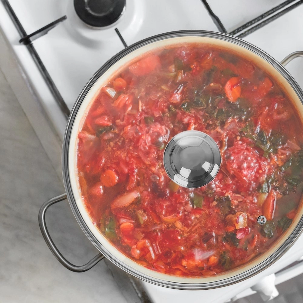 L’orifice d’aération intégré évacue l’excès de vapeur, réduisant le risque de débordement. La poignée métallique ergonomique offre une bonne prise, et le rebord aide à empêcher le glissement pour une adhérence étanche sur le récipient. Idéal dans toute cuisine pour une cuisson plus rapide et plus propre.