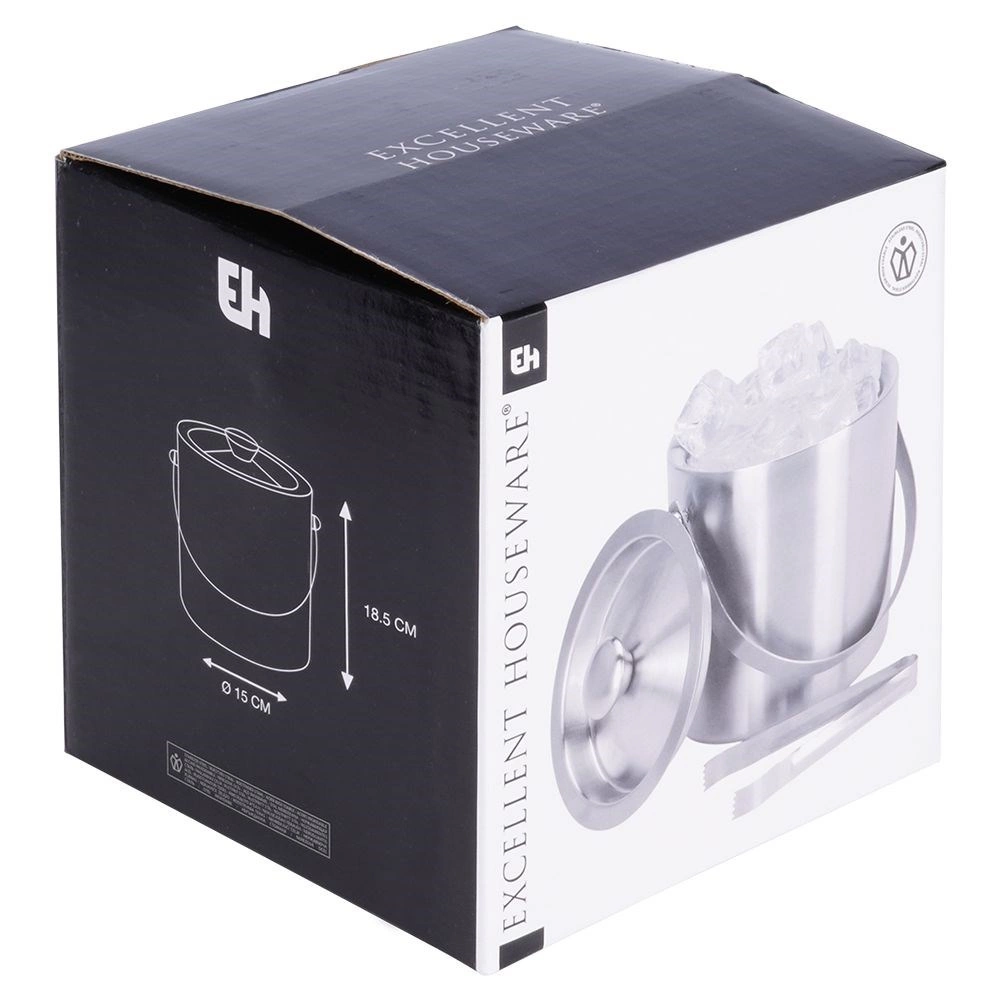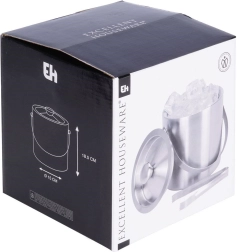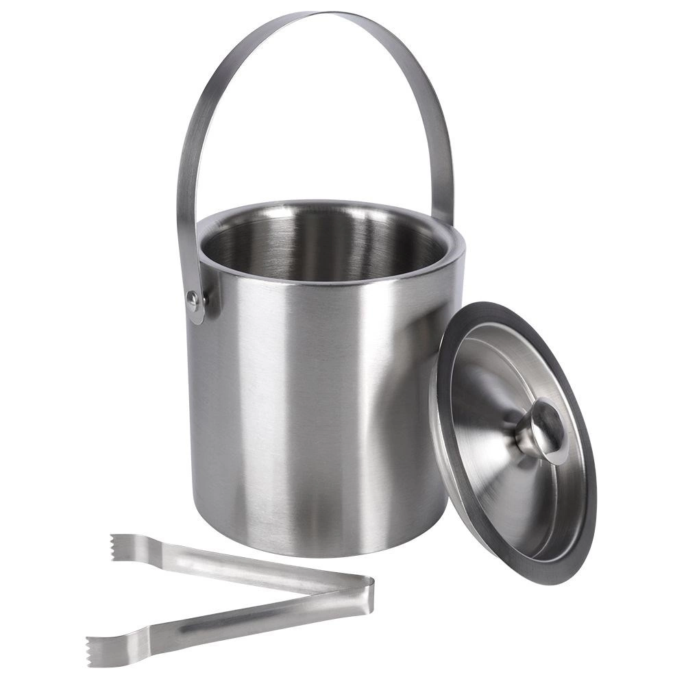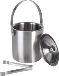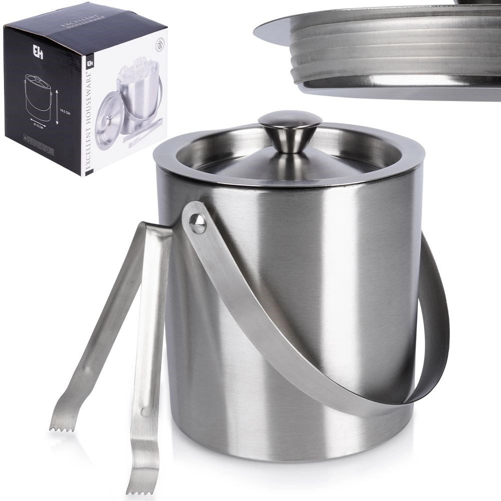 Élégant seau à glace en acier inoxydable avec couvercle, anse rabattable et pinces, qui garde la glace froide plus longtemps grâce à sa double paroi. Capacité pratique de 1,7 l, dimensions 15 × 16 cm et pinces de 14 cm pour un service hygiénique de la glace. Idéal pour le bar, les fêtes et la restauration.