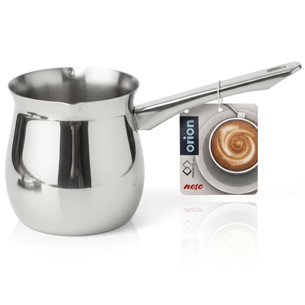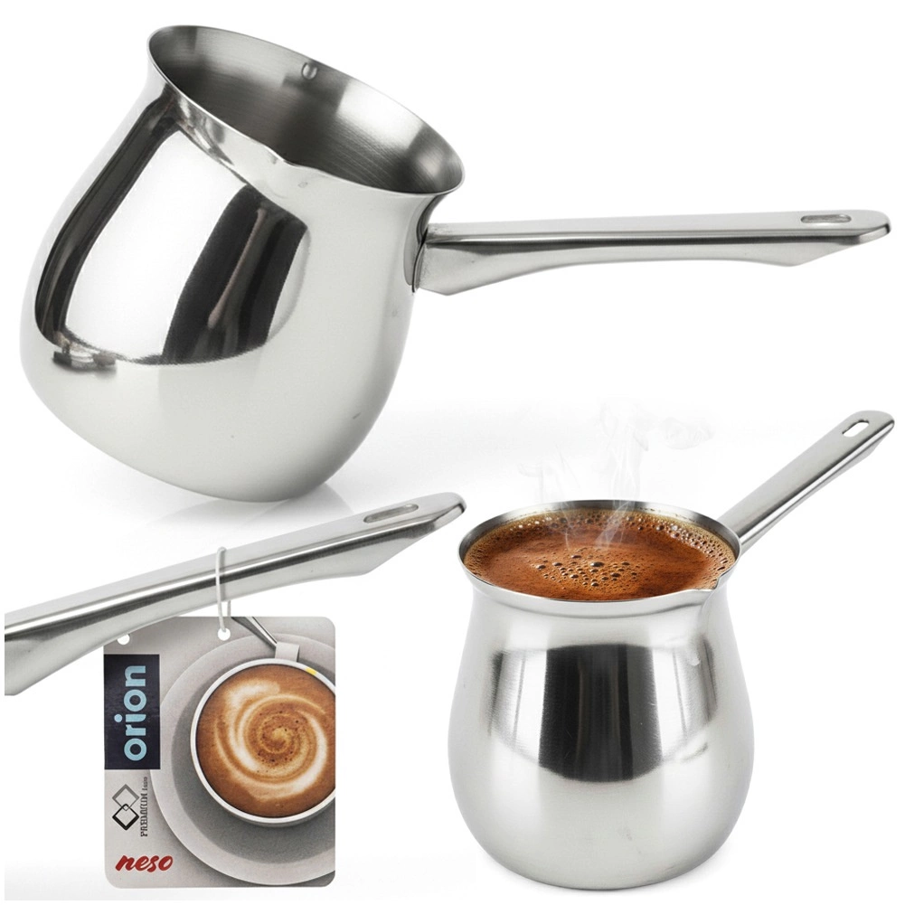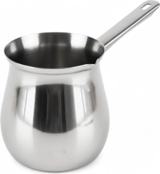 Découvrez une préparation du café simple et parfumée comme au café. Le cezve en acier inoxydable de 400 ml est idéal pour le café turc, mais aussi pour le chauffage du lait et d’autres boissons. L’inox de qualité garantit une longue durée de vie, un entretien facile et une allure élégante qui s’intègre à toute cuisine.