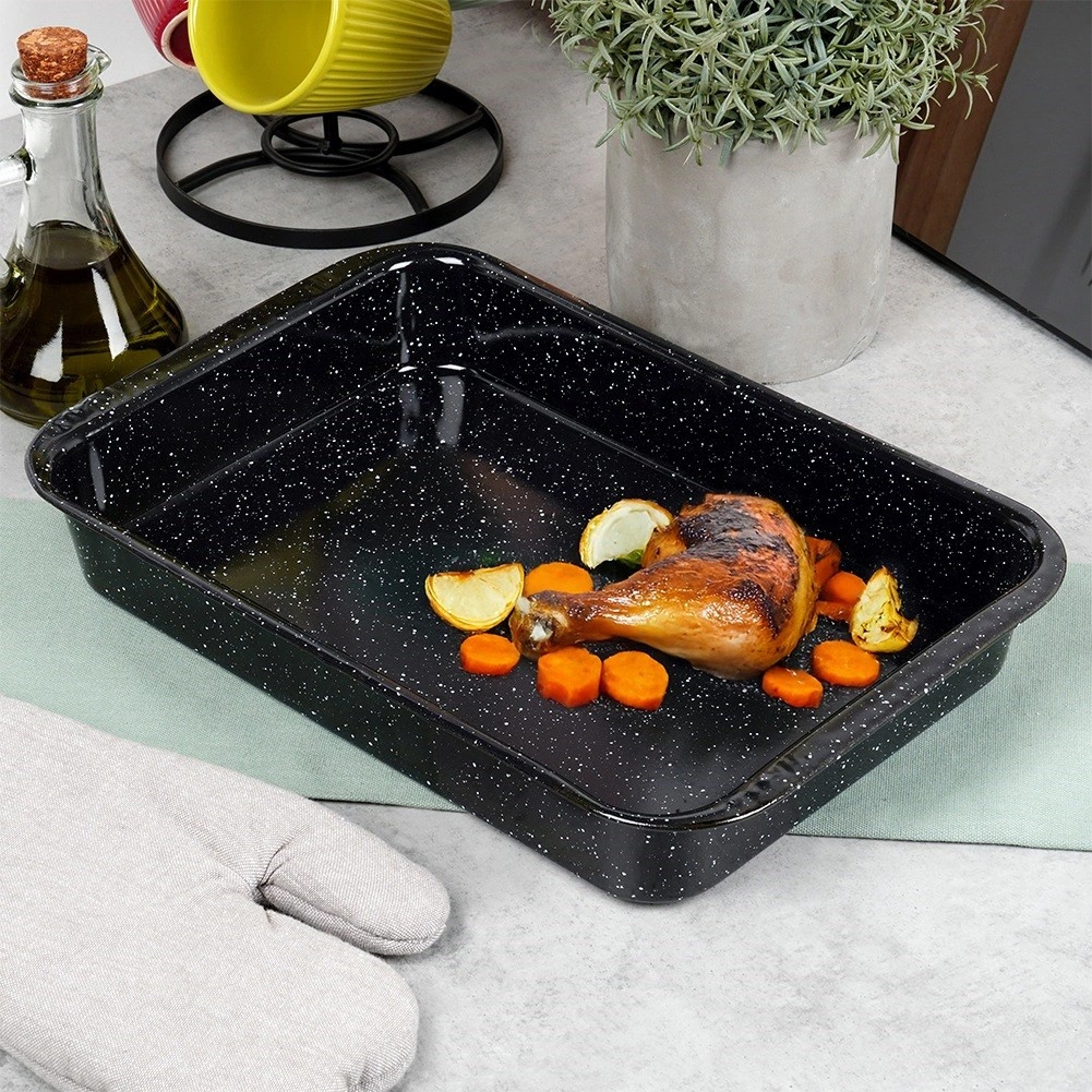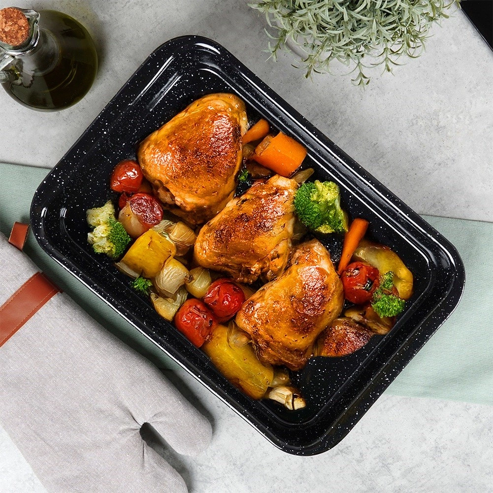 Ce plat émaillé offre des performances fiables pour la cuisine de tous les jours comme pour les cuissons festives. Grâce à ses bords hauts, il retient les jus et assure une cuisson uniforme. La surface émaillée est lisse, résistante et facile à entretenir, ce qui réduit l’effort après la cuisson.