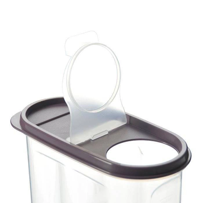 Boîte pratique de 1,2 l pour aliments secs avec couvercle doté d’un doseur rabattable et d’une jauge latérale. Garde les aliments frais plus longtemps, facilite le dosage et le portionnage précis. Fabriquée en plastique transparent sans BPA, adaptée au réfrigérateur, congélateur et lave-vaisselle.