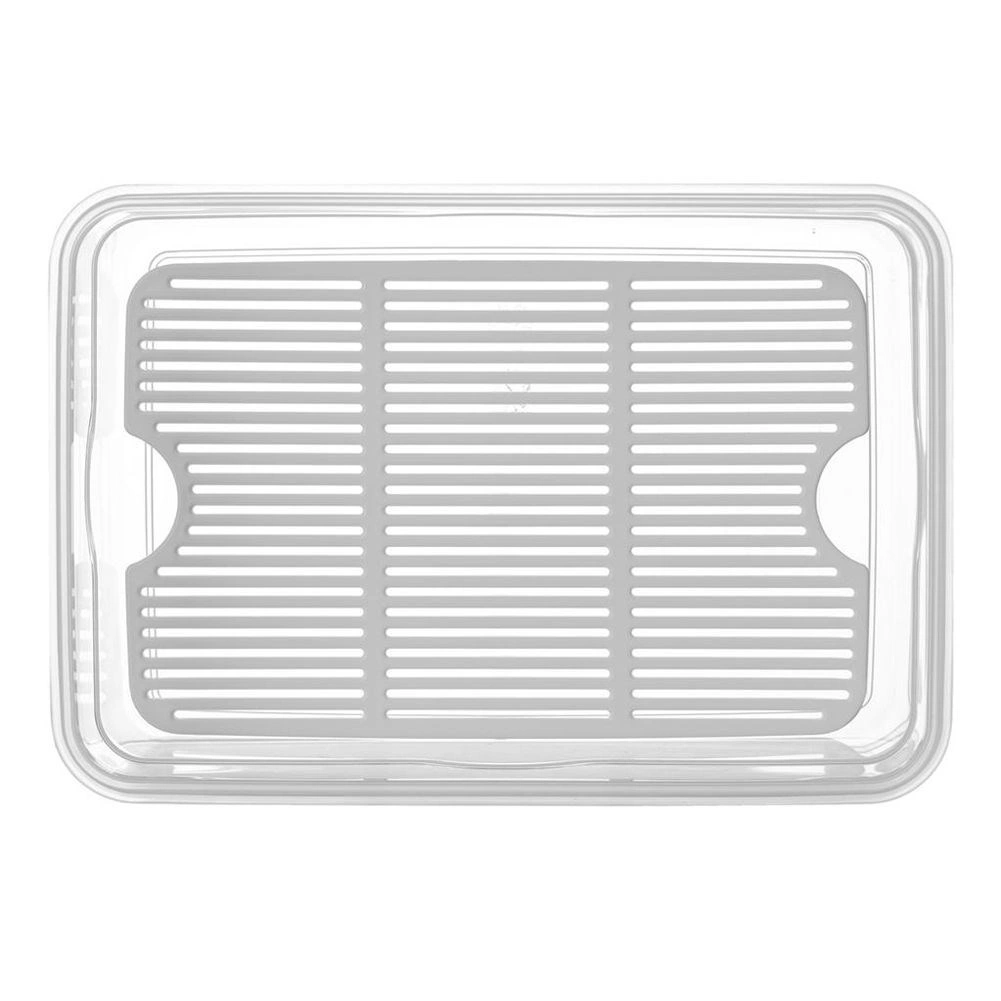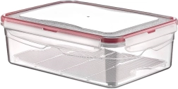 Gardez vos aliments frais plus longtemps avec cette boîte polyvalente de 2,6 l. Le joint en silicone et les quatre clips robustes assurent une fermeture sûre et sans fuite, tandis que la grille amovible favorise la circulation de l’air et maintient les aliments à l’écart de l’humidité au fond.
