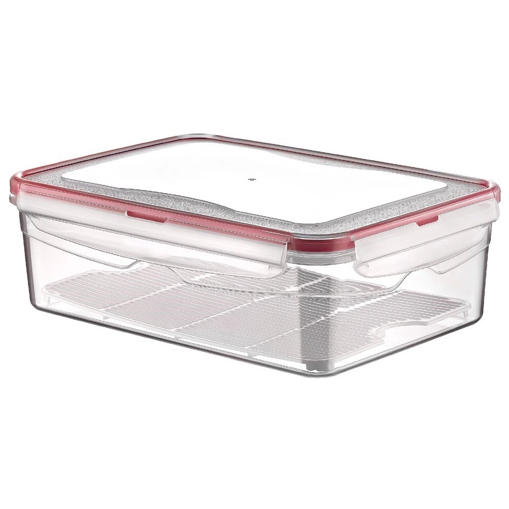 Boîte alimentaire pratique en plastique d’une capacité de 4,3 l avec grille amovible et couvercle hermétique pour une fraîcheur prolongée. Grâce à ses quatre clips et à son joint en silicone, elle est étanche à l’air et anti-fuite. Compatible micro-ondes (sans couvercle), lave-vaisselle, réfrigérateur et congélateur. Sans BPA, en plastique transparent pour un contrôle facile du contenu.