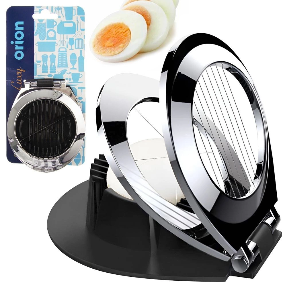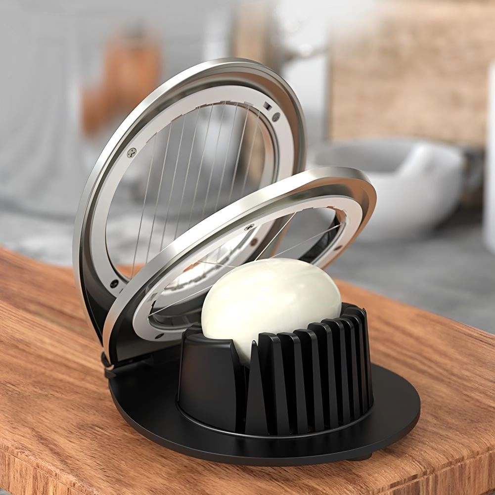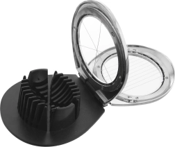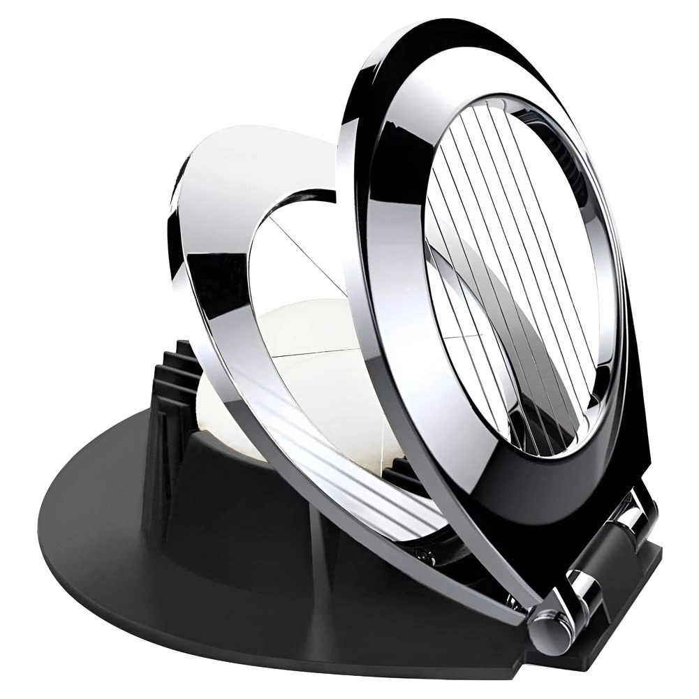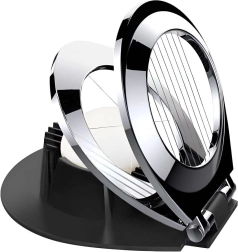 La combinaison de métal chromé et de plastique noir résistant assure longévité et stabilité à la coupe. La conception ergonomique permet une utilisation sûre et un nettoyage aisé, le coupe-œufs passant au lave-vaisselle.