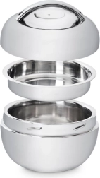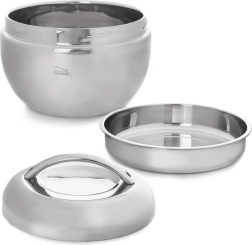 - 3 pièces : bol principal, bol/assiette intérieure, couvercle avec poignée
