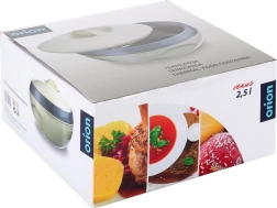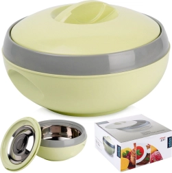 Bol isotherme pratique pour aliments d’une capacité de 2,5 l (utile 2,2 l), qui maintient vos plats chauds jusqu’à 2 heures grâce à son insert en acier inoxydable. Construction légère, fermeture facile par rotation du couvercle et poignée confortable pour le transport. Idéal pour le service de plats chauds et pour conserver les glaces en été.