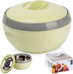 Pratique et élégant, le bol isotherme VENUS d’une capacité de 3,5 l garde vos plats chauds ou froids plus longtemps. Grâce à sa double paroi avec bol intérieur en acier inoxydable et sa coque extérieure en plastique résistant, il est idéal pour le service comme pour le transport. La fermeture à vis facile avec poignée supérieure assure une manipulation confortable, tandis que l’isolation thermique jusqu’à 2 heures aide à maintenir la température optimale sans réchauffer ni refroidir la vaisselle.