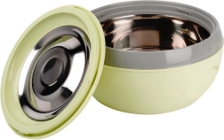 Le bol isotherme VENUS est un excellent allié pour les repas quotidiens, fêtes de famille et pique-niques. L’acier inoxydable intérieur lisse est hygiénique, facile à nettoyer et n’absorbe pas les odeurs. La partie extérieure en plastique résistant protège des brûlures et augmente la durabilité lors du transport. Grâce au couvercle à vis pratique et à la poignée intégrée, la manipulation est sûre et confortable.