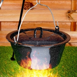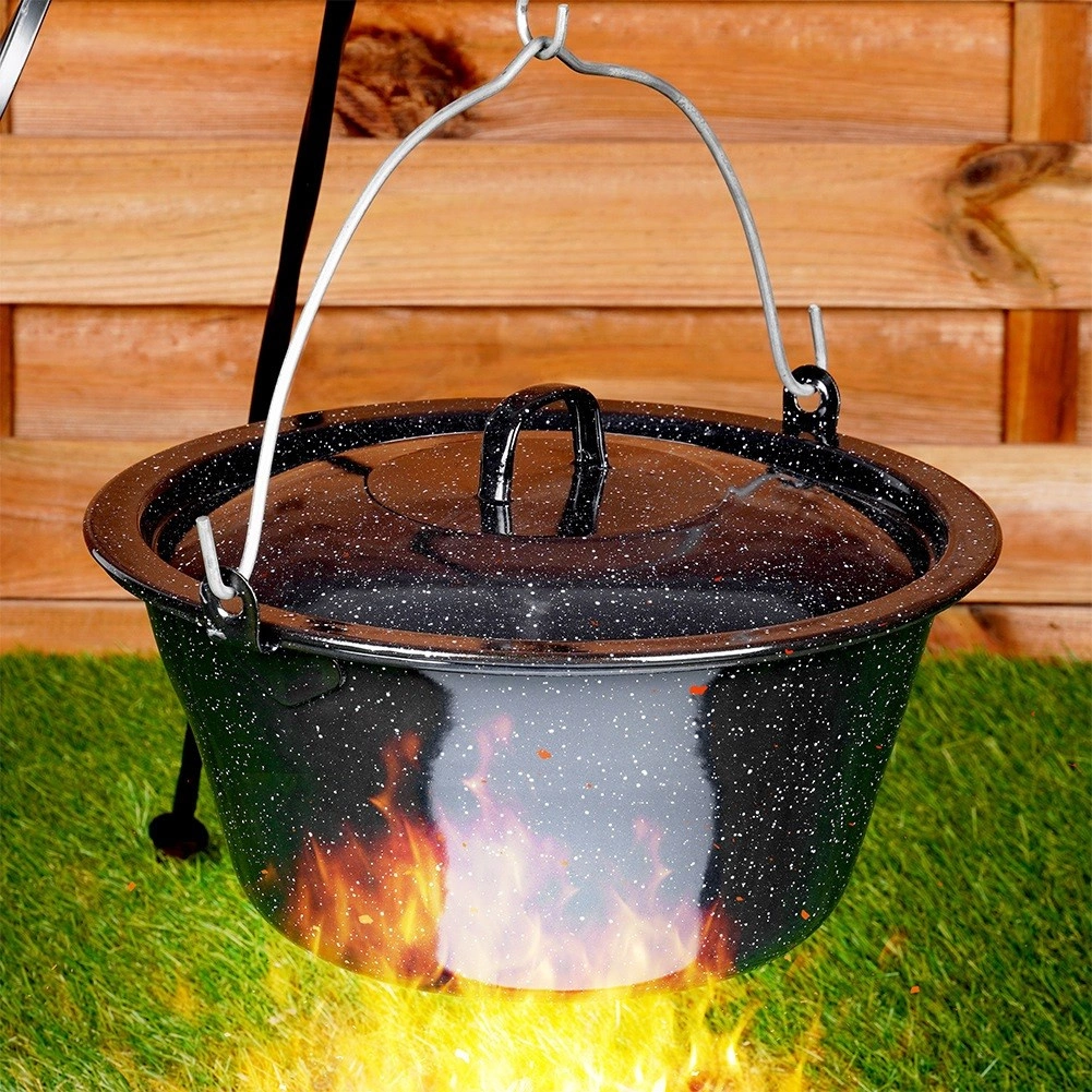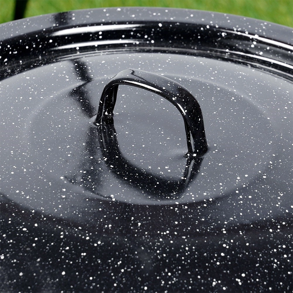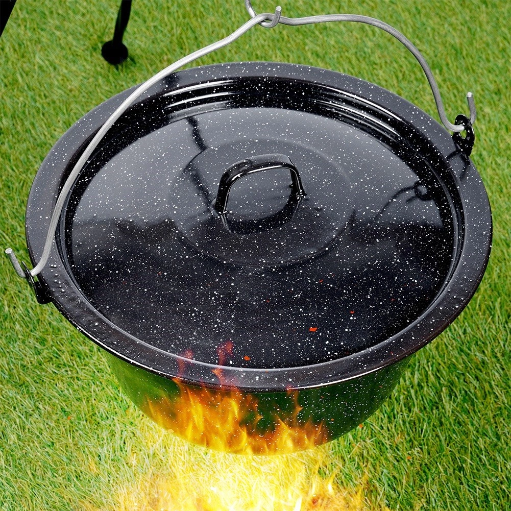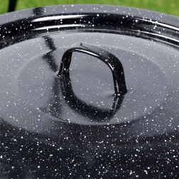 Ce couvercle émaillé est l’accessoire idéal pour la cuisine en plein air au chaudron – du goulasch aux soupes. Il convient aux chaudrons hongrois de 9,5 l et, grâce à sa forme bombée, conserve efficacement la chaleur et l’humidité, réduisant ainsi le temps de cuisson et améliorant la saveur finale des plats.