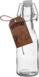 Bouteille en verre pratique au style rétro d’une capacité de 290 ml, dotée d’un bouchon à clip fiable et d’un joint en silicone. Parfaite pour l’huile d’olive, les sirops maison, les liqueurs ou le vin. Le verre transparent met joliment en valeur le contenu et la fermeture hermétique préserve la fraîcheur et les arômes sans risque de fuite.