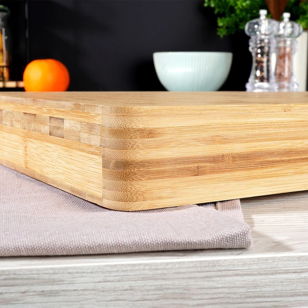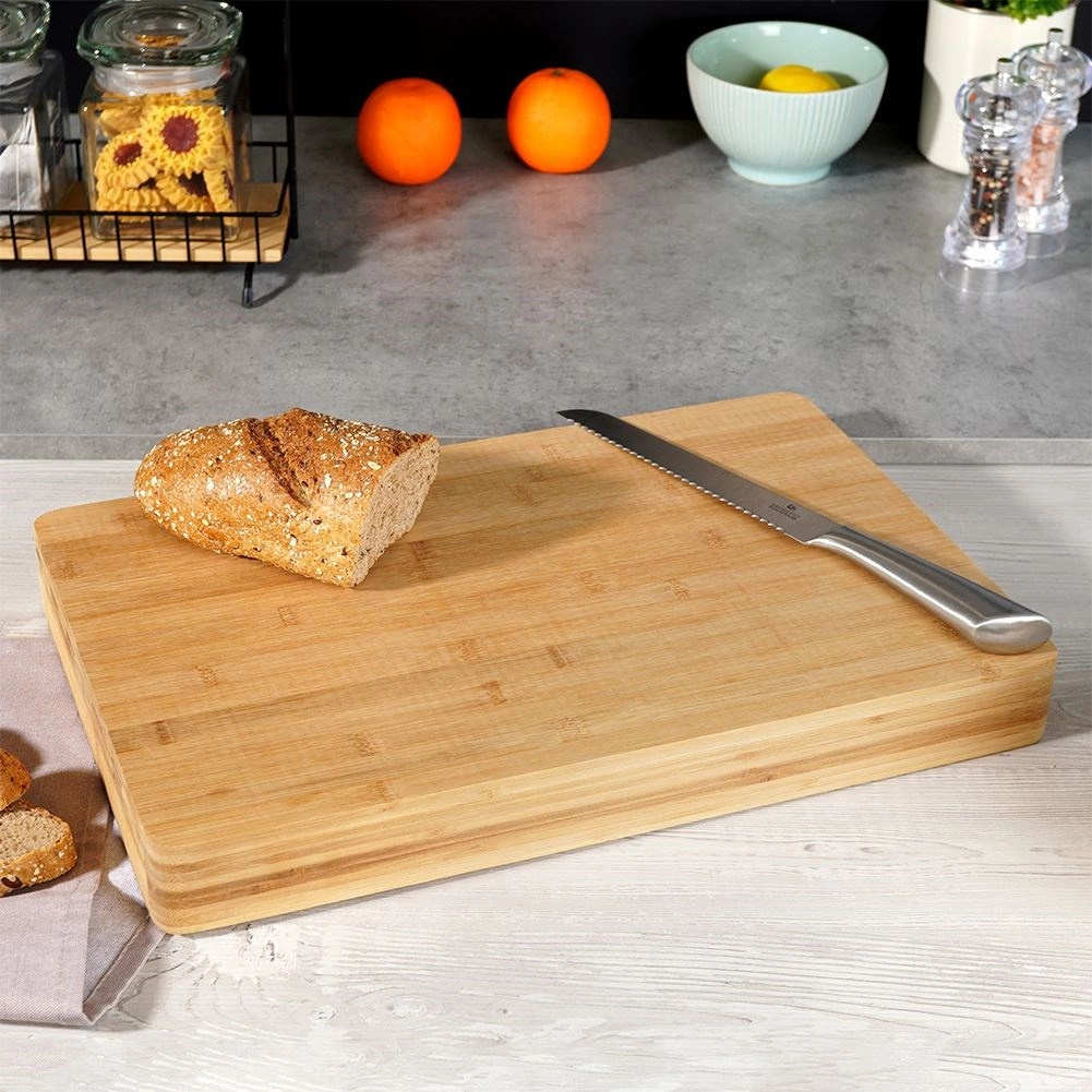 La planche épaisse en bambou offre une base ferme et sûre pour couper comme pour hacher, tout en préservant le tranchant des couteaux.