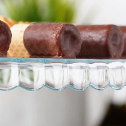 Le verre clair et le bord ondulé mettent en valeur l’apparence des gâteaux et des douceurs, qui brilleront littéralement sur la table.