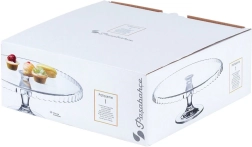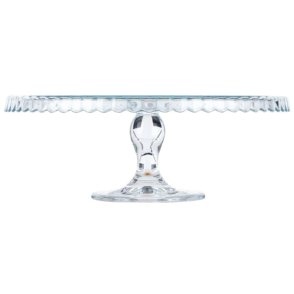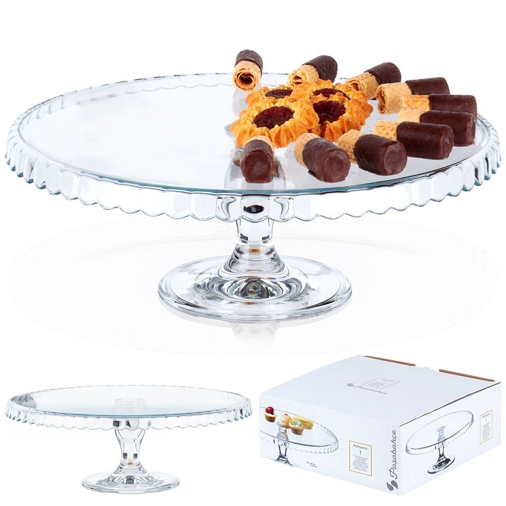 Exposez gâteaux, tartes, cupcakes ou canapés avec style. Le verre transparent du plateau met en avant les couleurs et textures de vos desserts, tandis que la colonne surélevée assure une découpe et un service confortables. Le bord ondulé apporte une touche décorative à toute table.