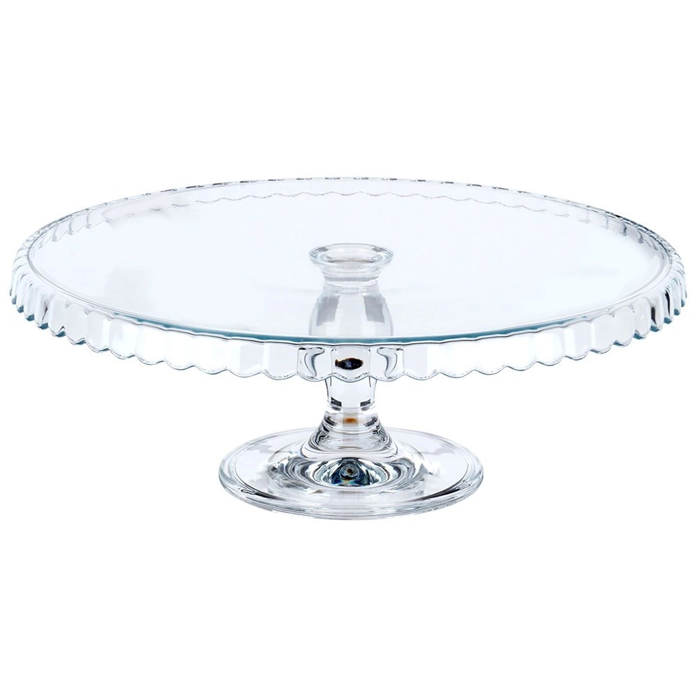 Élégant plateau à gâteau en verre sur pied de 32 cm de diamètre avec bord ondulé pour un service raffiné. Grâce au verre transparent, vos desserts et amuse-bouches ressortent parfaitement. Pied stable, usage polyvalent, entretien facile et design intemporel pour une table quotidienne comme de fête.