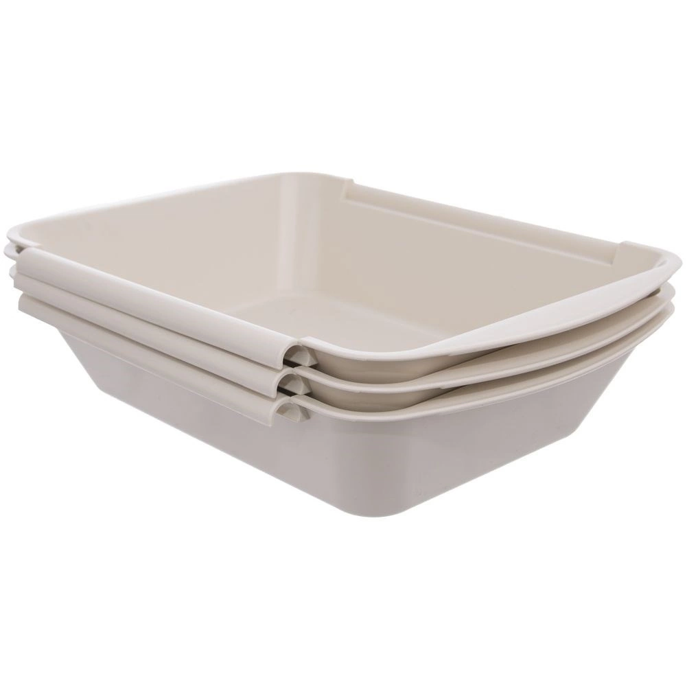 Chaque bol a une capacité de 1,5 litre et, grâce à ses dimensions compactes de 26 × 20 × 5,5 cm, il convient aux plans de travail standards. Après usage, emboîtez-les pour économiser de l’espace. Le plastique résistant de couleur beige est facile à nettoyer, compatible avec le lave-vaisselle et le micro-ondes.