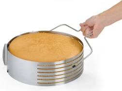 Pratique coupe-génoise à deux fils tranchants pour une découpe rapide et régulière des génoises en couches. Fabriqué en acier inoxydable, il est léger, durable et offre une hauteur de coupe réglable de 1,6 à 6,2 cm. Compatible lave-vaisselle et équipé de embouts en caoutchouc pour protéger le plan de travail.