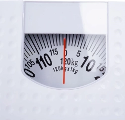 Le cadran semi-circulaire avec aiguille rouge et graduation de 1 kg permet une lecture rapide et précise jusqu’à 120 kg.