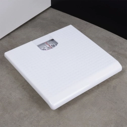 Balance de salle de bain mécanique avec corps en plastique résistant et profil bas, idéale pour un usage domestique. Grâce à l’échelle claire en kilogrammes jusqu’à 120 kg, vous obtenez rapidement votre poids, sans attente et sans piles. Le design blanc épuré s’intègre aux salles de bain modernes comme classiques.