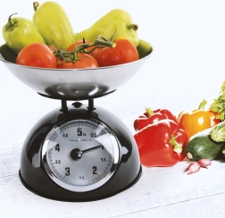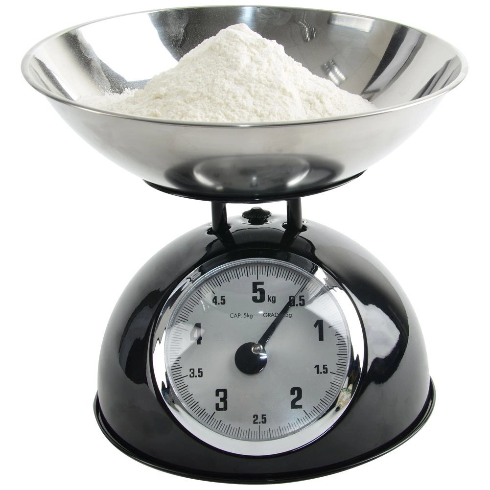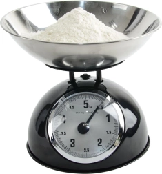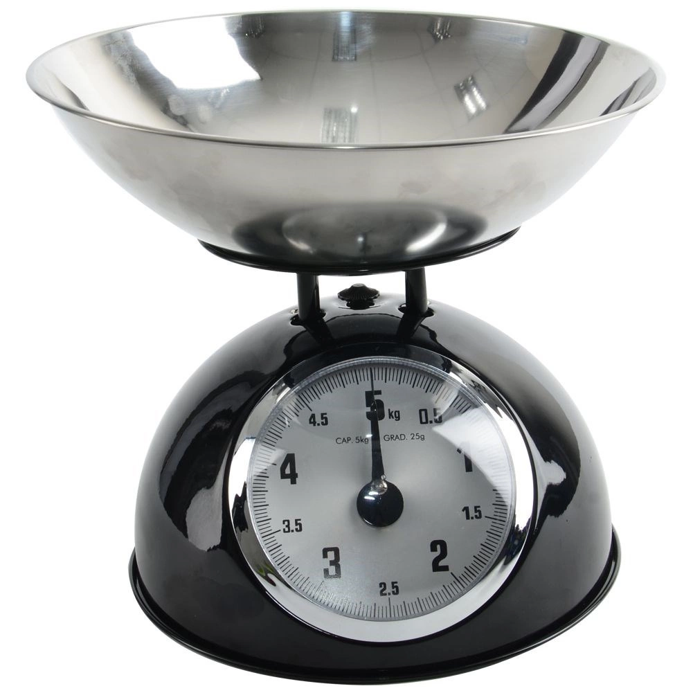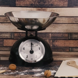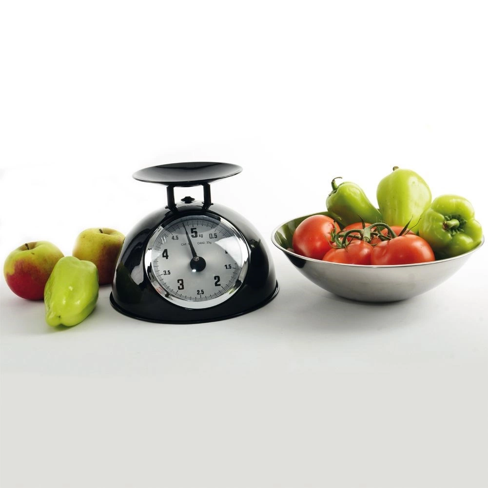 Cette balance mécanique au style rétro est un assistant fiable pour toute cuisine. Son corps métallique robuste noir et le bol en inox garantissent longévité et entretien facile. Grâce au cadran analogique avec marquage clair jusqu’à 5 kg, vous pesez facilement fruits, légumes, ingrédients secs et viandes.