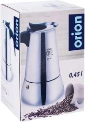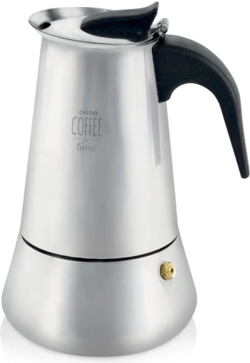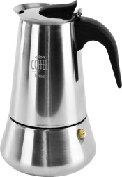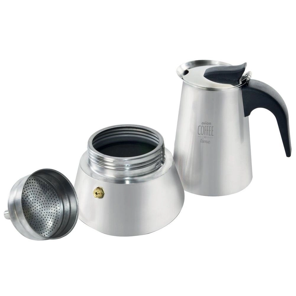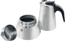 Élégante cafetière moka en acier inoxydable de 450 ml pour préparer l’espresso italien traditionnel jusqu’à 9 tasses. Elle offre une construction durable en acier inoxydable, une poignée ergonomique confortable, une valve de sûreté et un nettoyage facile, y compris compatible lave-vaisselle. Compatible avec tous les types de cuisinières sauf l’induction.