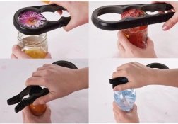 Ouvrez un couvercle en toute simplicité : choisissez l’ouverture adaptée, placez l’ouvre-bocaux sur le couvercle, serrez fermement et tournez d’un mouvement fluide. Cet ustensile de cuisine pratique économise du temps, de la force et ménage vos poignets.