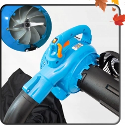 La lame métallique robuste et la turbine multi-ailettes réduisent efficacement les feuilles et petites brindilles afin de remplir davantage le sac et de le vider moins souvent.