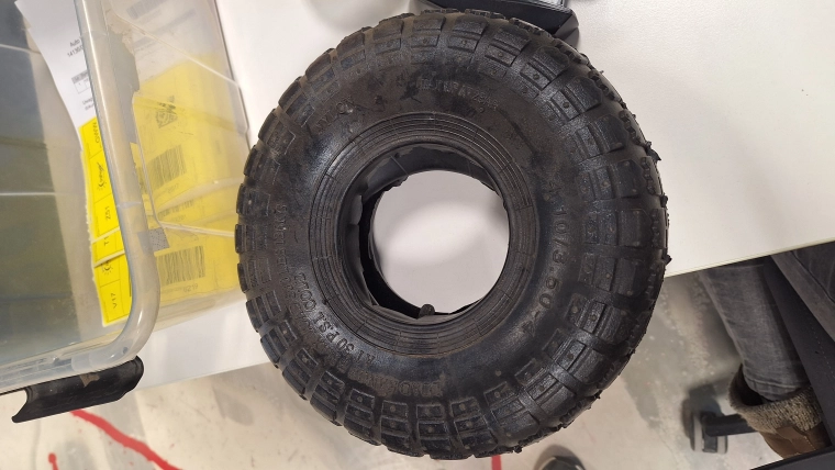 Pneu avec chambre à air robuste pour chariots Sunwaal GC1 et GC2, offrant une conduite fiable et une haute capacité de charge. Avec un diamètre de roue de 25 cm, une largeur de 7 cm et une capacité allant jusqu’à 136 kg par pneu, il est idéal pour les usages exigeants. Sans jante – conçu comme pneu de rechange avec chambre à air.