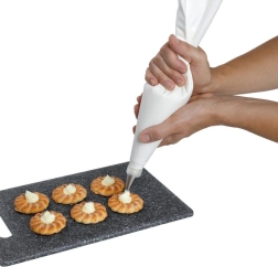 Poche à pâtisserie pratique de 47 cm pour un décor facile et précis de gâteaux, entremets et mets salés. Fabriquée en coton de qualité avec une couche intérieure en caoutchouc pour une meilleure étanchéité et un contrôle optimal. Elle est résistante, élastique et adaptée à un usage multiple, compatible avec diverses douilles en acier et lavable au lave-vaisselle.