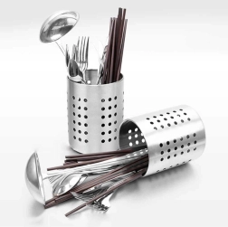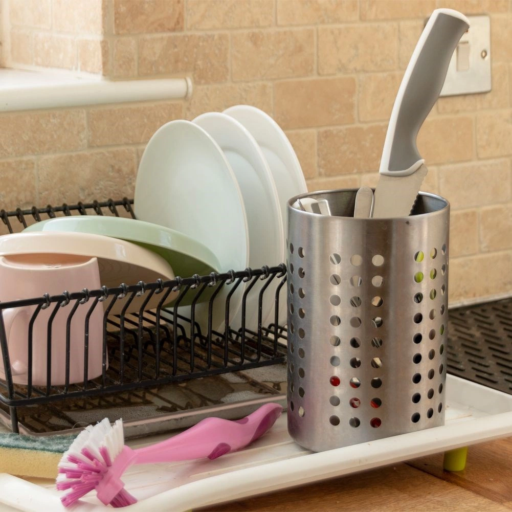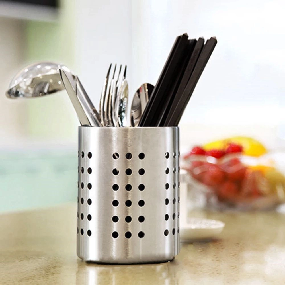 Gardez votre plan de travail bien rangé avec ce support en acier inoxydable, robuste et élégant. La conception perforée favorise un séchage rapide et empêche l’accumulation d’humidité, ce qui le rend idéal pour déposer les couverts lavés comme les ustensiles de cuisine. Facile à nettoyer et, grâce à sa large ouverture, il permet de ranger confortablement des accessoires grands et petits.