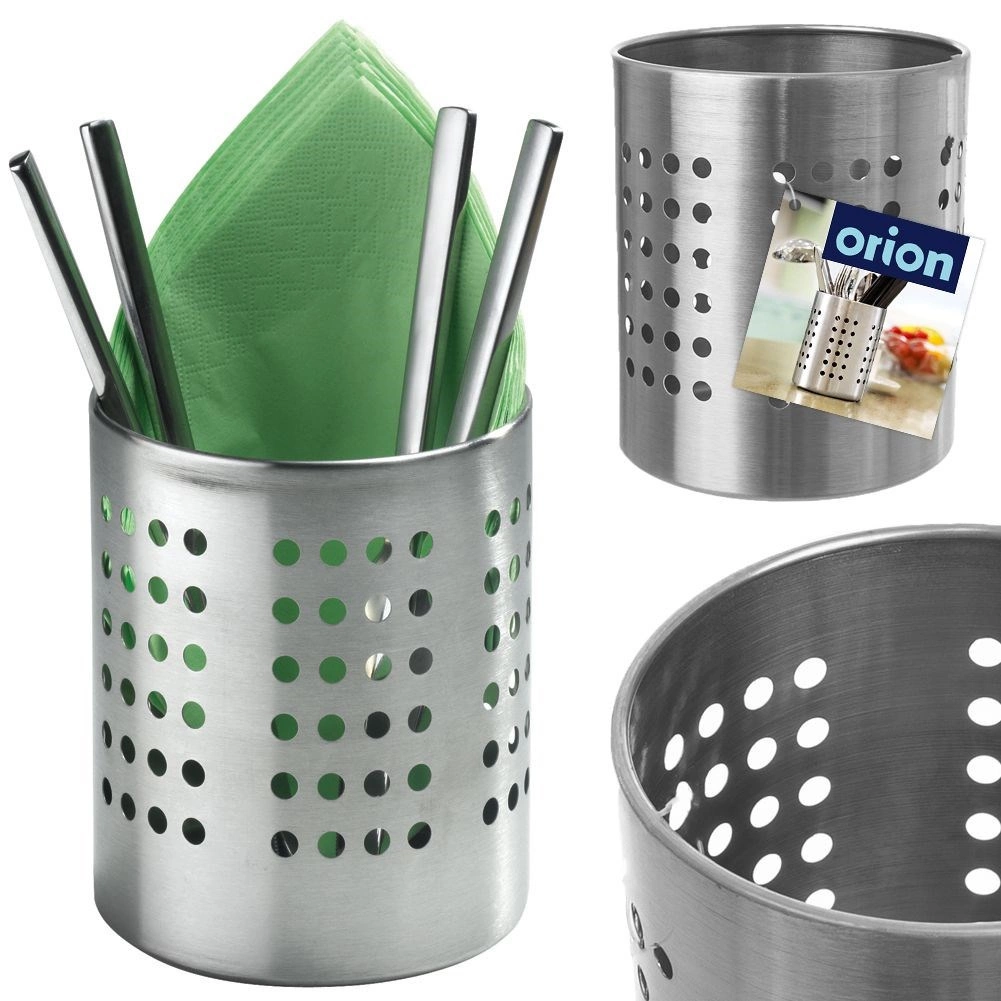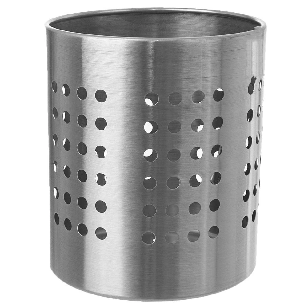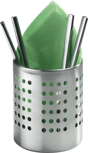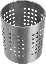 Support pratique en acier inoxydable pour couverts et ustensiles de cuisine, diamètre 12 cm et hauteur 13 cm. Grâce aux perforations, il assure l’évacuation de l’eau et la circulation de l’air, de sorte que les couverts sèchent plus rapidement et restent hygiéniquement propres. Acier inoxydable durable de couleur argentée, utilisation polyvalente comme égouttoir et organiseur, et design classique qui s’intègre dans toute cuisine.