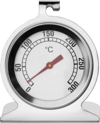 Thermomètre fiable pour four et fumoir en acier inoxydable pour un suivi précis de la température lors de la cuisson et du fumage. Offre une large plage 0–300 °C, une échelle lisible par pas de 10 °C, une base stable et un crochet pratique pour la suspension. Conception durable en acier inoxydable et verre résistant aux hautes températures, sans danger pour le contact alimentaire et facile à nettoyer.