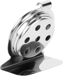 La base stable assure une tenue ferme sur la plaque, le crochet permet la suspension sur la grille pour une visibilité facile.