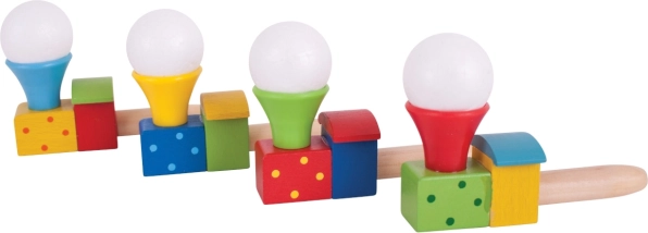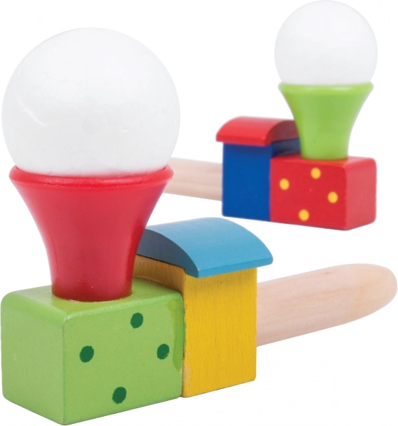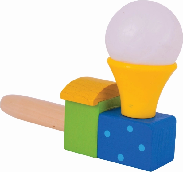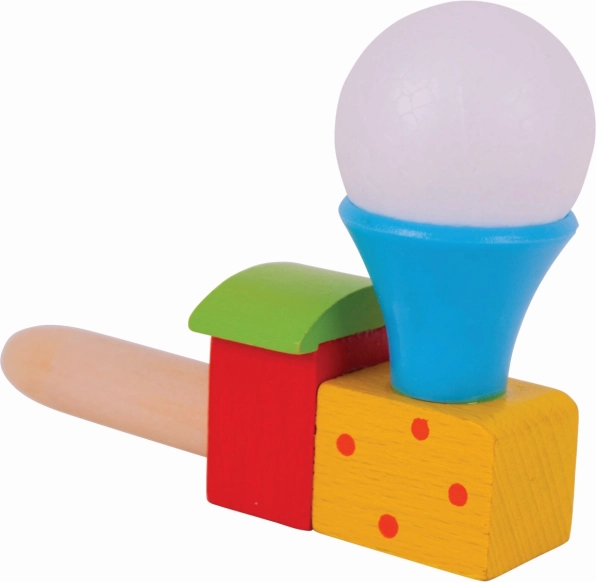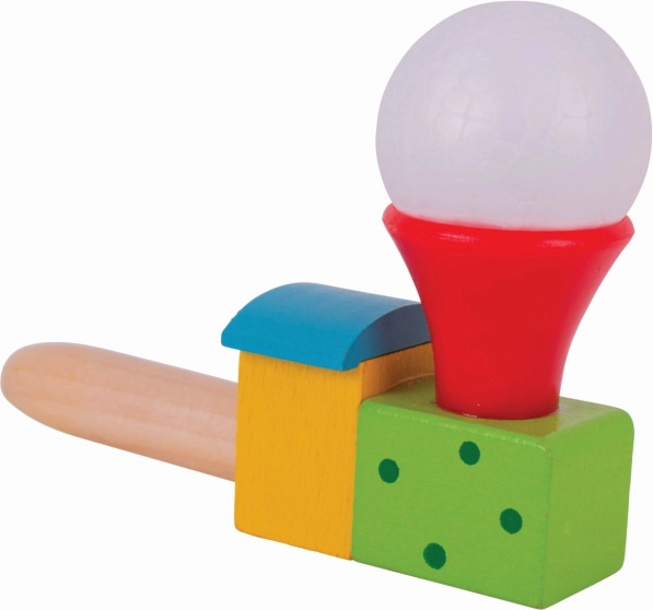 Cette locomotive en bois colorée avec petit ballon transforme un simple souffle en petit miracle. Les enfants entraînent leur souffle et son contrôle, observent la petite balle blanche flotter au-dessus de la cheminée et développent ainsi coordination et patience. Idéale pour de courtes pauses ludiques comme pour un jeu plus long et concentré.