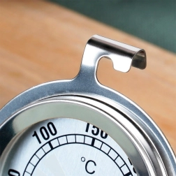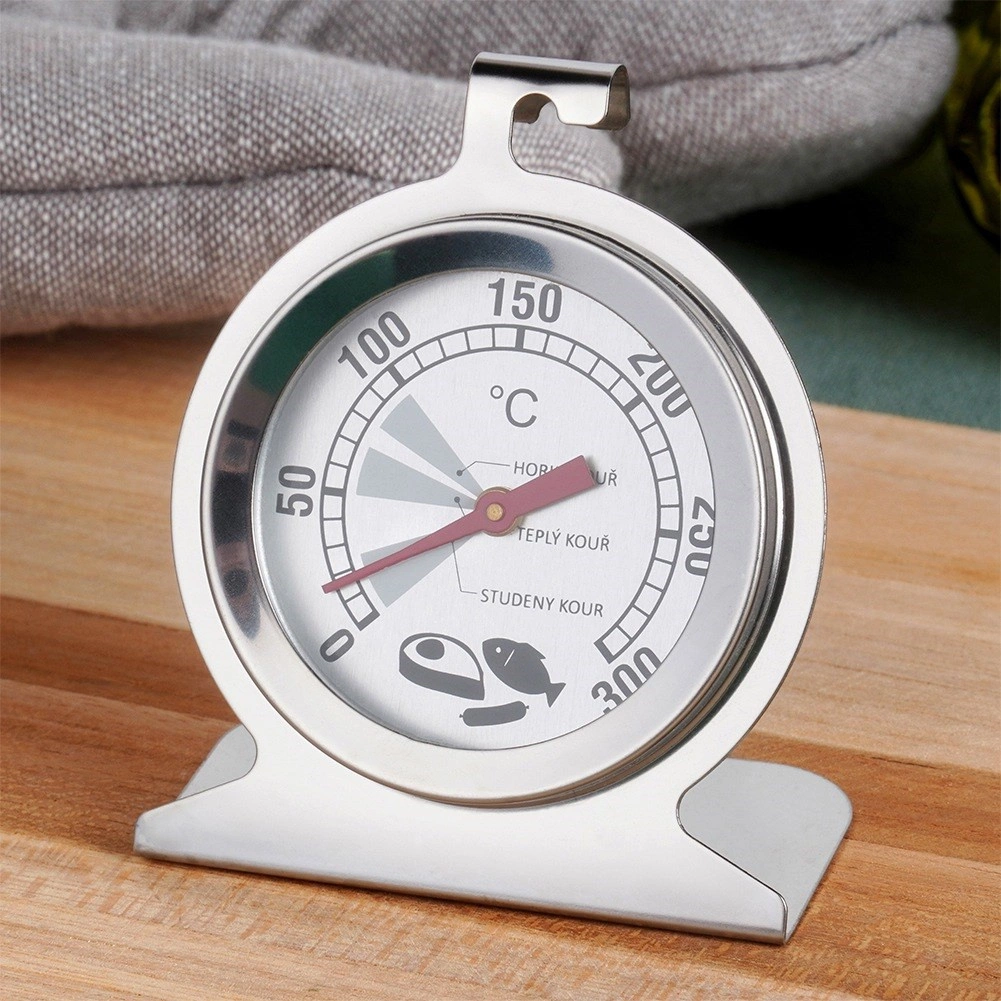Thermomètre pratique en acier pour four et fumoir, pour un contrôle précis de la cuisson et du fumage. Plage de 0–300 °C avec graduation tous les 10 °C, peut être accroché ou posé, il est résistant aux hautes températures et facile à nettoyer. Fabrication de qualité en verre et acier garantissant une longue durée de vie.