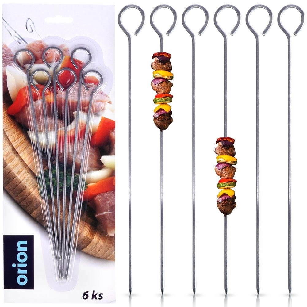 Pratique lot de six brochettes en acier de 23,5 cm pour le gril et la cuisson au four. Grâce au profil plat, les aliments ne tournent pas sur la broche, l’acier inoxydable garantit résistance et longue durée de vie, et la boucle de prise en main facilite la manipulation des brochettes.