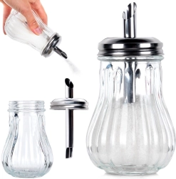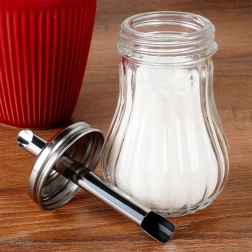 Pratique, ce sucrier en verre avec doseur de 190 ml assure un dosage précis du sucre en un seul geste. Il dispose d'un verre transparent résistant, d'un couvercle en inox avec bec verseur pour une coulée contrôlée et d'un corps rainuré pour une prise en main sûre. Un accessoire élégant pour la cuisine comme pour la table à manger.