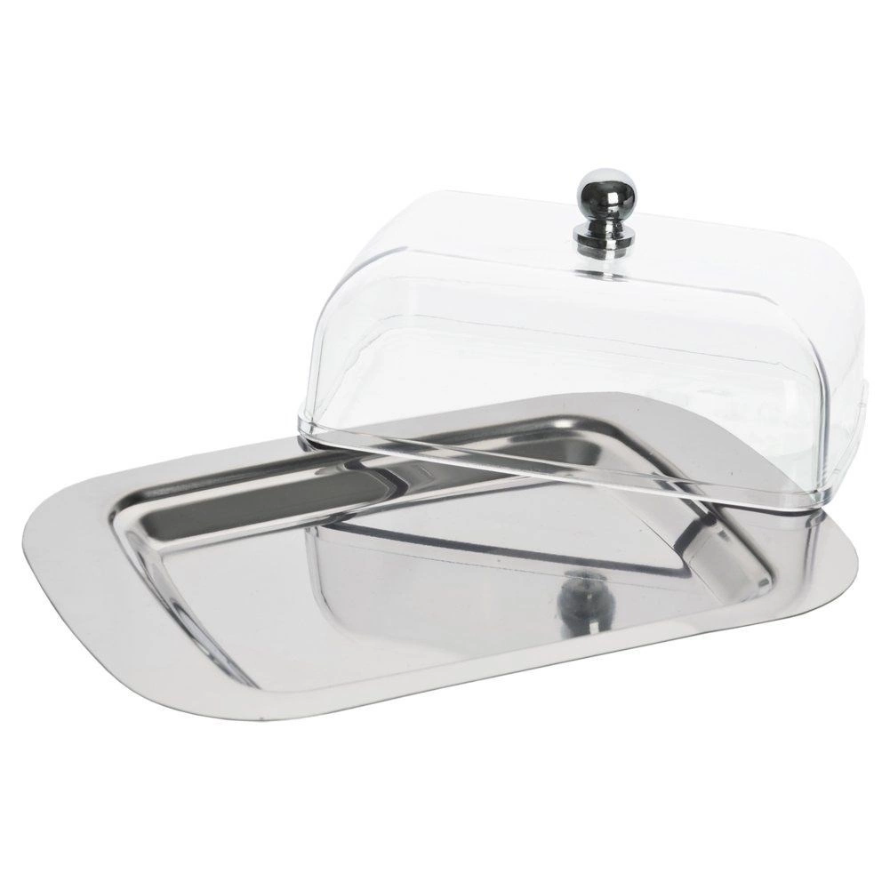 Élégant beurrier en acier inoxydable avec couvercle transparent qui garde le beurre frais plus longtemps et prêt à être servi. Grâce à ses dimensions compactes de 18 × 12 × 8 cm, il s’adapte à tous les réfrigérateurs et à la table. Base en inox résistante, cloche transparente et poignée pratique pour une ouverture facile. Rangement hygiénique, protection contre les odeurs et nettoyage facile, compatible lave-vaisselle.