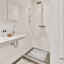 Ce tapis de salle de bain carré, à fine texture et doté d’un réseau dense de ventouses, offre une protection fiable contre les glissades dans la douche, le receveur ou la baignoire. Grâce à son matériau souple et résistant, il amortit agréablement la foulée et protège les pieds du froid des carreaux.