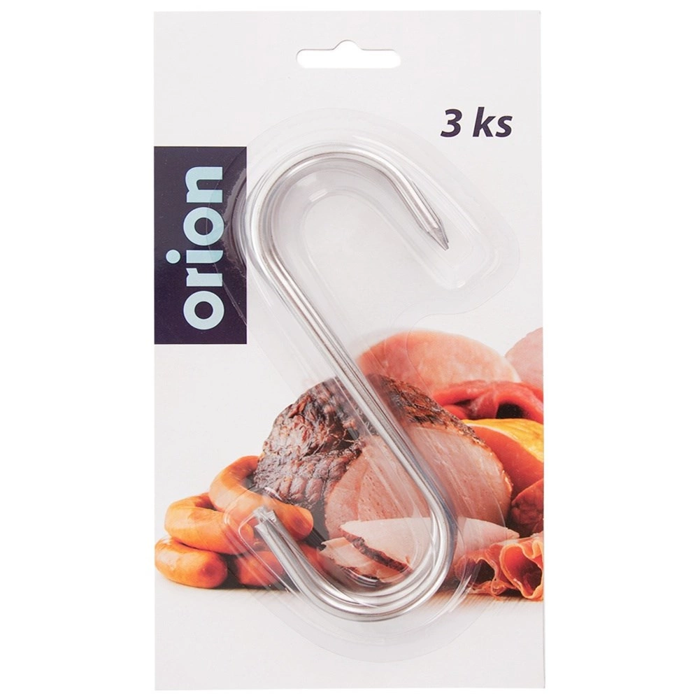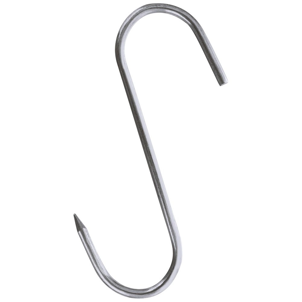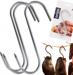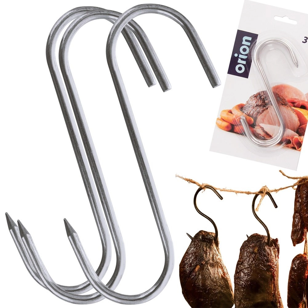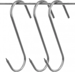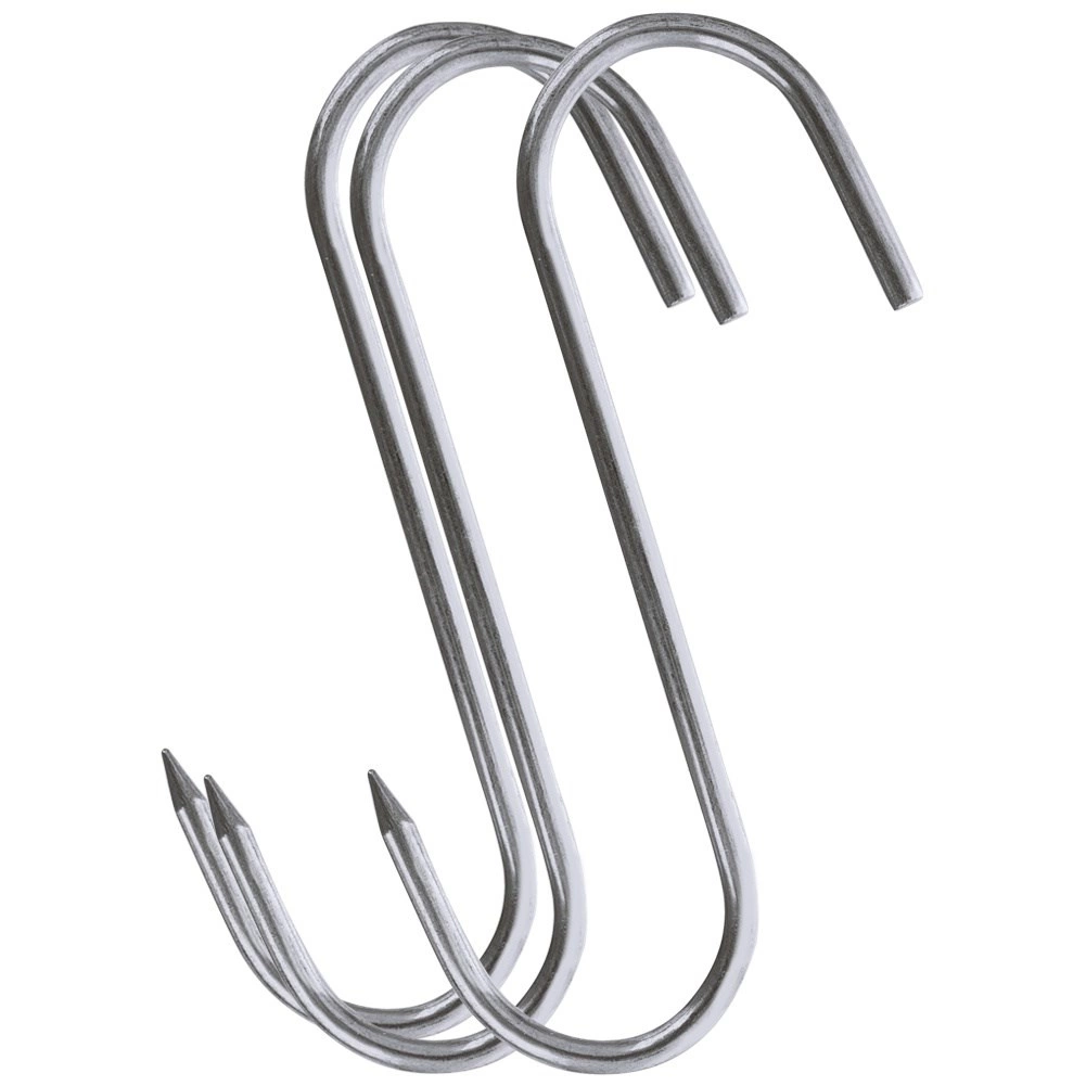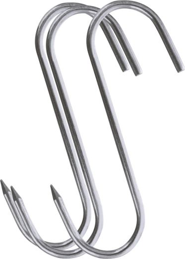 Set de trois crochets inox pour fumoir de dimensions 13,5 × 9 cm et de diamètre 0,5 cm, idéal pour le fumage domestique comme professionnel. L’extrémité affûtée d’un côté facilite l’embrochage de gros morceaux de viande, tandis que la forme ouverte en S permet une suspension rapide sur les barres du fumoir.