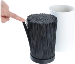 La forme cylindrique compacte en noir économise de la place sur le plan de travail, maintient les outils en position verticale et s’intègre parfaitement aux cuisines modernes comme classiques.