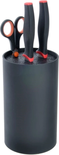 Un bloc universel pour couteaux élégant, dimensions 11 × 11 × 18 cm, assure un rangement sûr et organisé des couteaux de cuisine, ciseaux et ustensiles. Il possède un insert à fibres amovible qui s’adapte à différentes formes de lames sans risque d’émoussement. Plastique léger et résistant dans une couleur noire élégante, adapté aux cuisines modernes comme classiques. Qualité ORION selon les normes européennes.