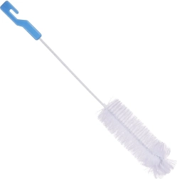 Longue brosse pour bouteilles de 41 cm avec poignée bleue et poils blancs denses, nettoie efficacement l’intérieur des récipients étroits. Grâce à sa forme élancée, elle atteint facilement le fond et le goulot. Elle possède un crochet pratique pour la suspension et est légère tout en étant résistante. Idéale pour les bouteilles, vases, carafes et biberons.